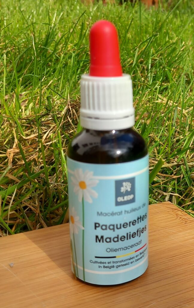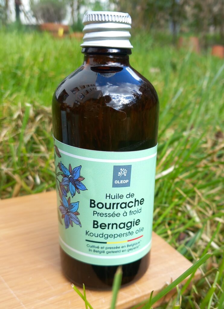 Nous cultivons la bourrache, le chanvre, le calendula et les pâquerettes pour en faire des huiles pressées à froid et macérâts. Nous sommes en deuxième année de conversion à l’agriculture biologique. L’huile d’églantier sera disponible dans quelques années ainsi que l’huile de noisette.
